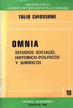 El autor ha reunido varios de sus trabajos como académico para componer el libro denominado OMNIA o sea el conjunto de todos o varios aspectos de las disciplinas a las cuales ha consagrado sus estudios. En ese conjunto hay trabajos ya publicados como Los Problemas Sociales en la Formación del Estado Venezolano, La Forma del Estado, Centralismo y Federalismo y Sanciones en Derecho Mercantil. Hay otros publicados en la prensa o en revistas, y algunos no publicados. Con la inserción de tales temas para formar un nuevo libro se obtendrá la actualización de conceptos que tienen vigencia, como son los referentes a los problemas sociales venezolanos entre los caules se ha incluido discursos de Chiossone en las primeras asambleas agrarias en Mérida cuando ejerció, entre los años de 1942 y 1944, la primera magistratura del Estado.